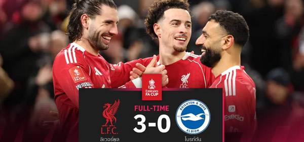 ผลบอล ลิเวอร์พูล 3-0 ไบรท์ตัน : "ซาลาห์" ยิง-จ่าย! หงส์แดงลิ่วรอบ 5 เอฟเอ คัพ