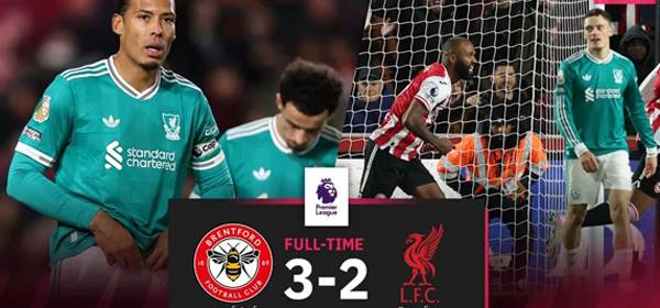 ผลบอล เบรนท์ฟอร์ด 3-2 ลิเวอร์พูล : หงส์ในลีกโคม่า! แพ้ 4 นัดติดอันดับรูดอยู่ที่ 6