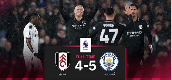 ผลบอล ฟูแล่ม 4-5 แมนซิตี้| เรือเฮหืดจับ! จี้ปืนสองแต้ม-ฮาลันด์ซัดครบ 100 ในพรีเมียร์ลีก