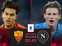 เซเรีย อา 30 พ.ย. 68 โรม่า จ่าฝูงสุดเซอร์ไพรส์เปิดบ้านรับนาโปลี แชมป์เก่าในศึกดา...