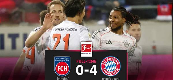 ผลบอล ไฮเดนไฮม์ 0-4 บาเยิร์น| เสือใต้บุกต้อนนำฝูงโด่งส่งท้ายปี