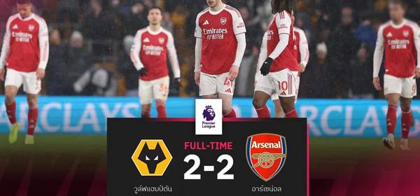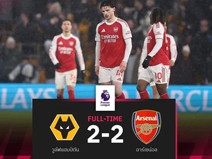 ผลบอล วูล์ฟส์ 2-2 อาร์เซน่อล : ปืนแผ่วโดนตีนาทีบาป นำฝูงทิ้งแมนซิตี้ 5 แต้ม