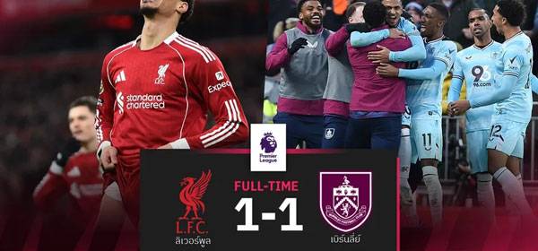 ผลบอล ลิเวอร์พูล 1-1 เบิร์นลี่ย์ : หงส์แดงเจ๊า 4 นัดติดในลีก! เจอรองบ๊วยบุกตี