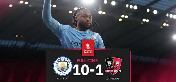 ผลบอล แมนซิตี้ 10-1 เอ็กเซเตอร์! เซเมนโย่ เปิดซิงยิง-จ่ายเรือถล่มโหดลิ่วรอบ 4