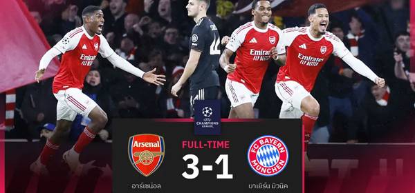 ผลบอล อาร์เซน่อล 3-1 บาเยิร์น : ของจริง!ปืนใหญ่โชว์เหนืออัดเสือใต้ขึ้นจ่าฝูง UCL