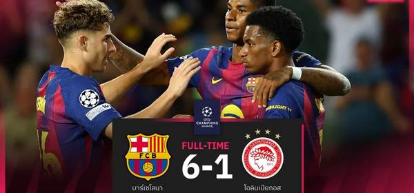 ผลบอล บาร์เซโลน่า 6-1 โอลิมเปียกอส| เฟร์มีนแฮตทริก-แรชฟอร์ดเบิ้ล ศึกUCL