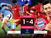 ลาซิโอ ขาดลอย 4-1 โรเบิร์ต เลวานดอฟสกี้ ทำสถิติซัดเม็ดที่ 72 ในเวทีแชมเปี้ยนส์ลีกเท่ากับ ราอูล กอนซาเลซ ขณะที่ไอ้หนู จามาล มูเซียล่า กลายเป็นแข้งอังกฤษที่อายุน้อยสุดที่ทำได้ในรายการนี้ ในศึกยูฟ่า แชมเปี้ยนส์ ลีก รอบ16ทีมสุดท้าย นัดแรก เมื่อคืนวันอังคารที่ผ่านมา
