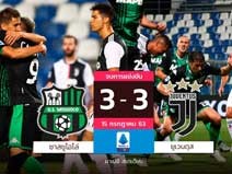 ซาสซูโอโล่ 3-3 ทำให้ยังมีคะแนนเป็นจ่าฝูงนำทีมตามมาถึง 7 แต้ม ต้องรอการฉลองแชมป์ออกไปก่อน ในการแข่งขันศึกฟุตบอลกัลโช่ เซเรีย อา อิตาลี คืนวันพุธที่ 15 กรกฎาคมที่ผ่านมา