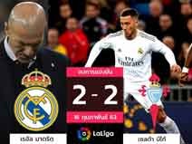 ซีดาน ถึงกับออกอาการเบื่อโลก เมื่อ "ราชันชุดขาว" เรอัล มาดริด พลาดคว้าชัยไปอย่างน่าเสียดายถูก เซลต้า บีโก้ ไล่ยิงเสมอนาทีที่ 85 จบที่ผล 2-2 แบ่งกันไปทีมละแต้ม แต่กระนั้น เรอัล มาดริด ยังคงรั้งจ่าฝูงเดี่ยวโดยมีแต้มทิ้งห่าง บาร์เซโลน่า อยู่ 1 คะแนน ในศึกฟุตบอล ลา ลีกา สเปน วันอาทิตย์ที่ 16 ก.พ. ที่ผ่านมา