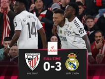 คีลิยัน เอ็มบัปเป้ กดสกอร์สามนัดหลังทุกถ้วยรวม 7 ประตู นัดนี้เหมาสองเม้ดพร้อมหนึ่งจ่าย เรอัล มาดริด บุกถล่ม แอธ.บิลเบา 3-0 "ราชันชุดขาว" เก็บเพิ่ม 36 คะแนนจี้ บาร์เซโลน่า จ่าฝูงแต้มเดียว