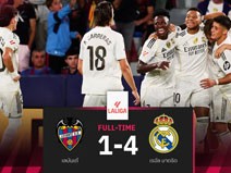 ไล่เฮาเซ่น! เรอัล มาดริด เกือบแย่หลังมาเหลือผู้เล่น 10 คน ตั้งแต่ครึ่งแรกหลังจาก ดีน เฮาเซ่น โดนใบแดงไล่ออกไป ก่อนมาโดน เรอัล โซเซียดาด ตามตีไข่แตกไล่มาในครึ่งหลังแต่สุดท้ายไม่ทัน ทำให้ "ราชันชุดขาว" เก็บ 12 แต้มเต็มนำจ่าฝูงเดี่ยวๆ
